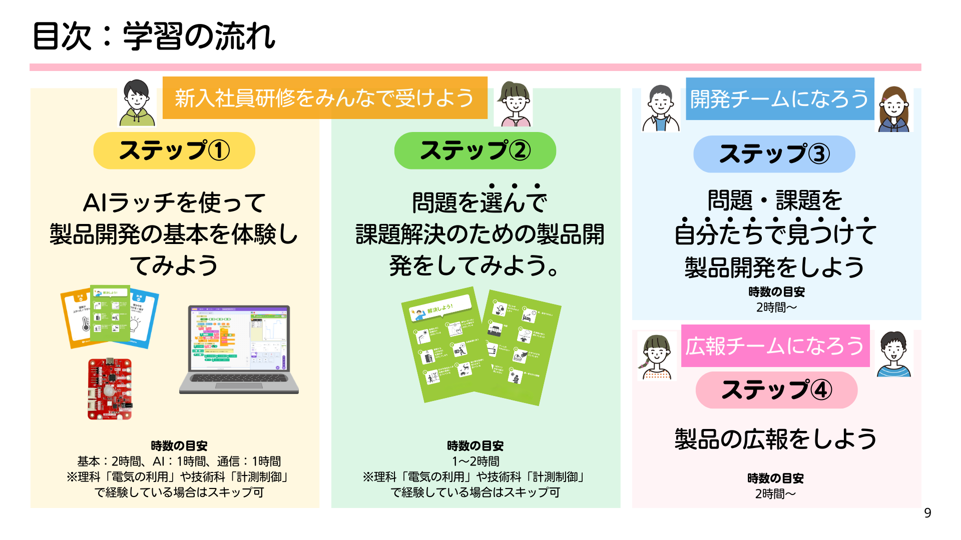 この教材は、AIラッチを活用して、子どもたちが実社会にある「困りごと」に向き合いながら、自ら課題を見つけ、解決に挑戦する学びを体験できる構成となっています。