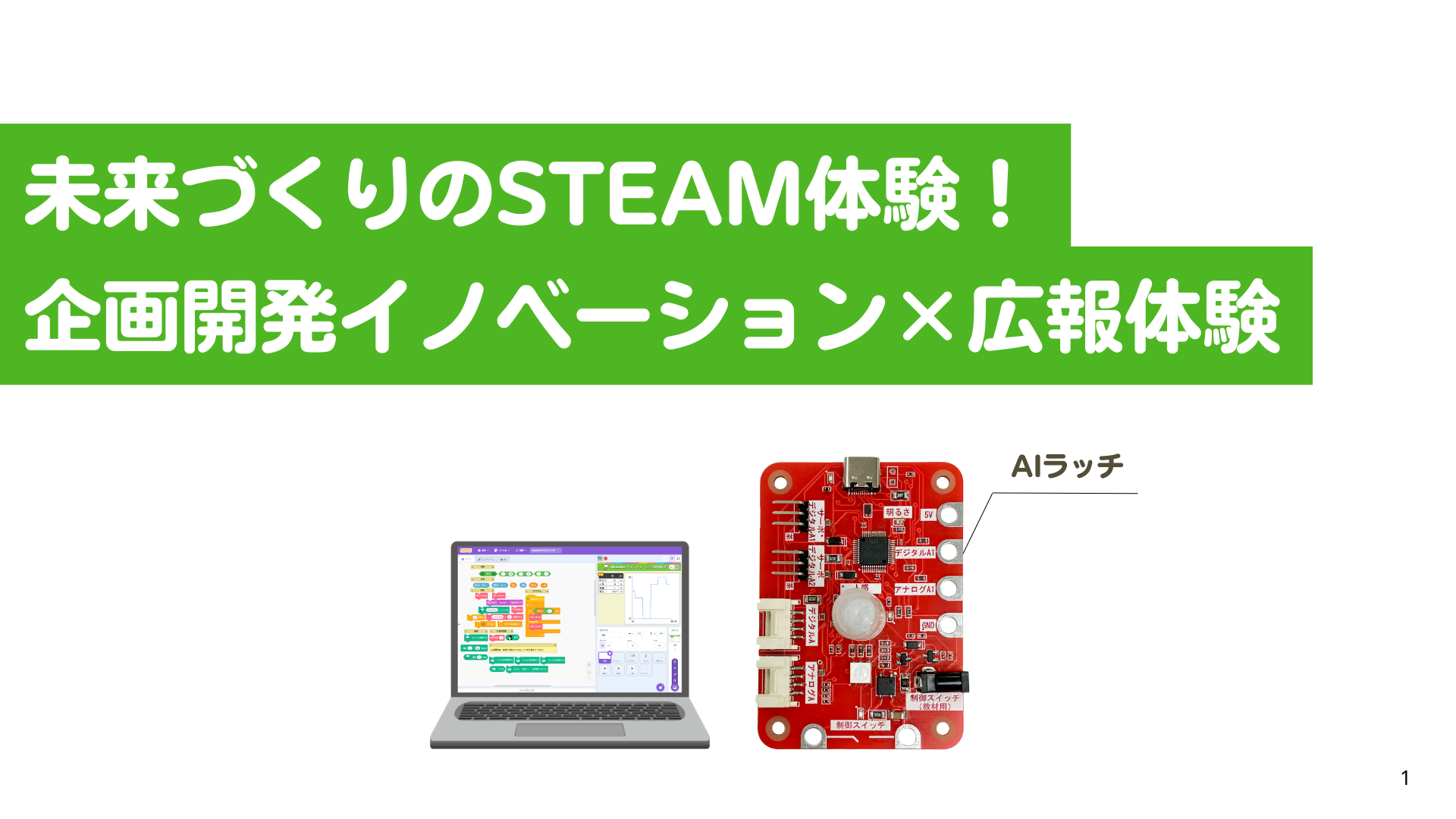 この授業スライドでは、身の回りの「困った!」や「こうだったらいいのに」と思うことに目を向け、自分たちで問題を見つけて、その解決にチャレンジします。 AIラッチを使って、プログラミングやものづくり、広報まで体験しながら、社会をよりよくするアイデア=“イノベーション”を生み出していきます。 自分の力で課題を見つけ、解決するプロセスは、将来の仕事や社会でも役に立つ大切な力です。 スライドに沿ってイノベーション体験をし、「未来を変える一歩」を踏み出してみましょう!