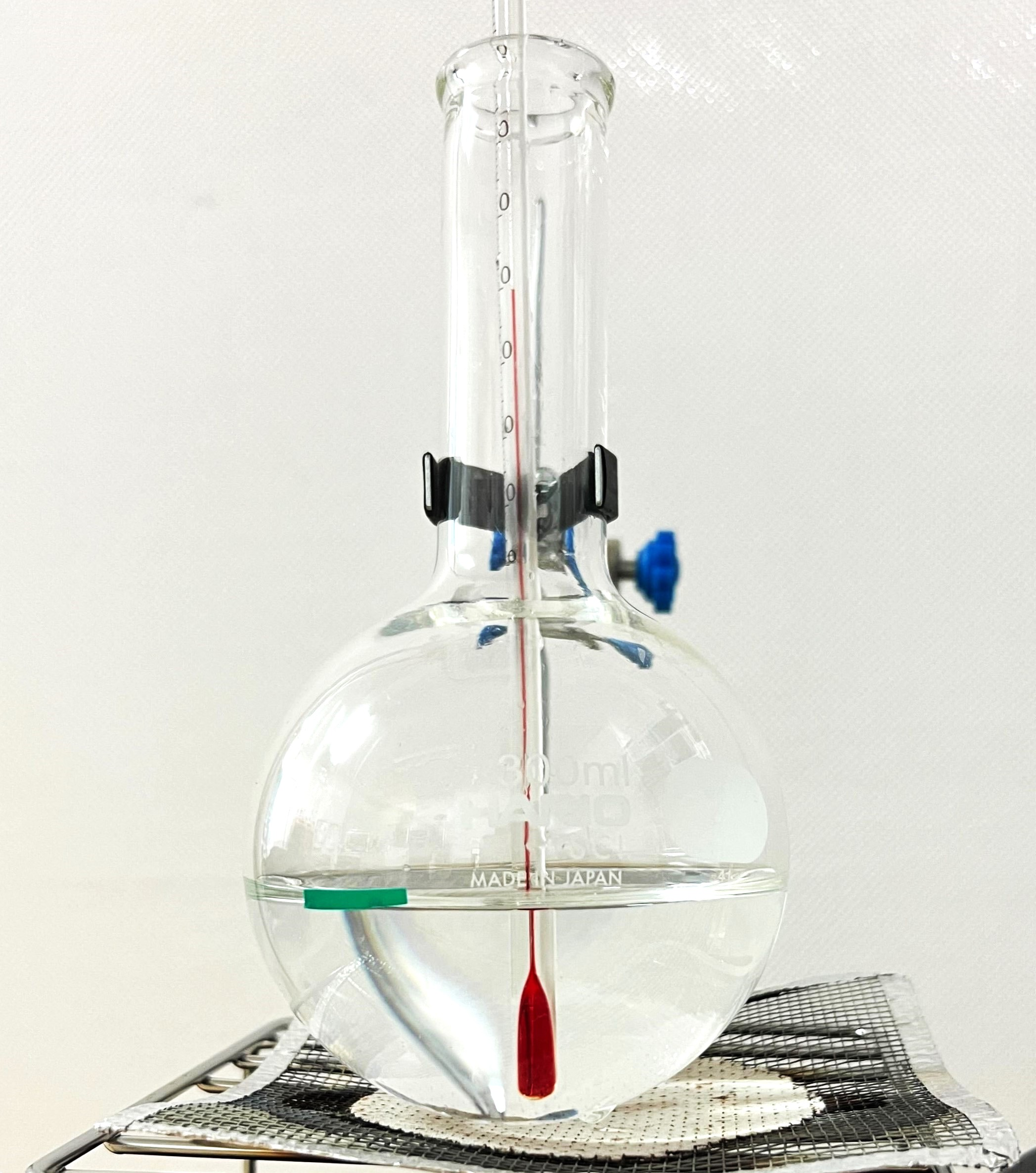 - 棒温度計を使用するところを、防水温度センサーに置き換える。(防水温度センサーの先端を、水の中に入れる。ケーブルは、火に当たらないようにスタンドの上を通す。)