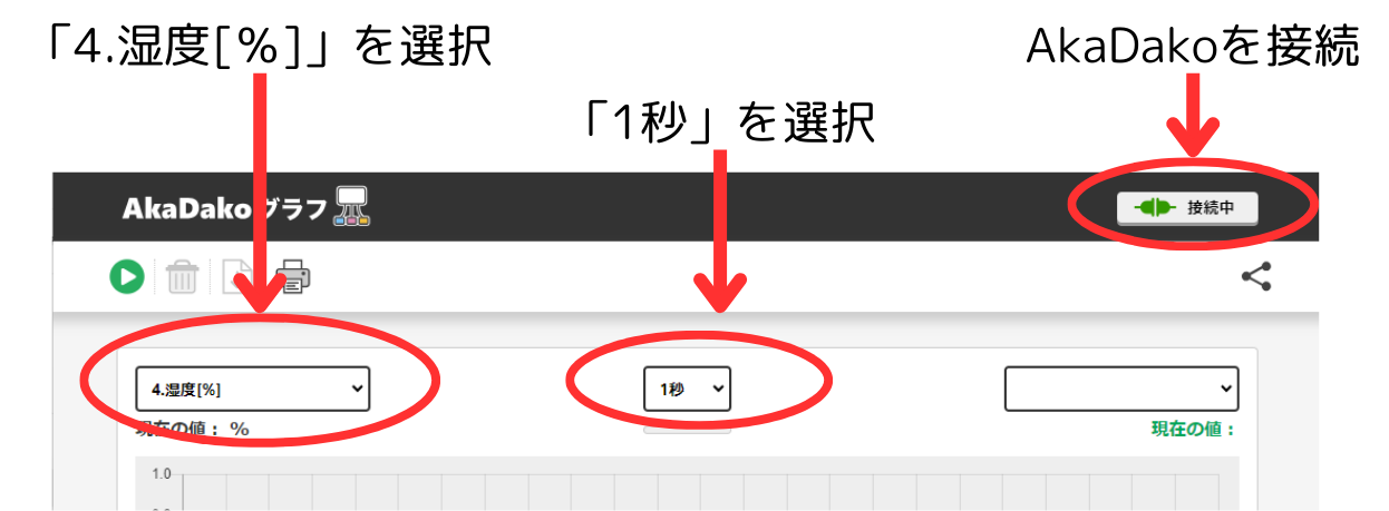 - グラフ左上のセレクターで「4.湿度[%]」を選択。