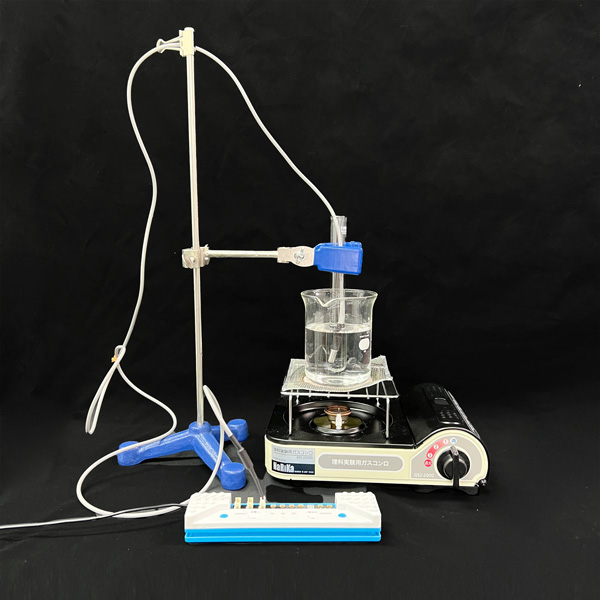 ** ■実験環境準備 ** 8. 教科書の記載に従って、実験装置をつくる。 9. 棒温度計を組み込む箇所に、棒温度計の代わりに防水温度センサーを入れる。