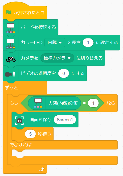 - 毎回「Screen1」という名前で上書きするのではなく、名前を撮影時間にしましょう。この場合、大量に連写してしまうとScratchが動かなくなるため、1回撮影したら5秒待つようにしましょう。