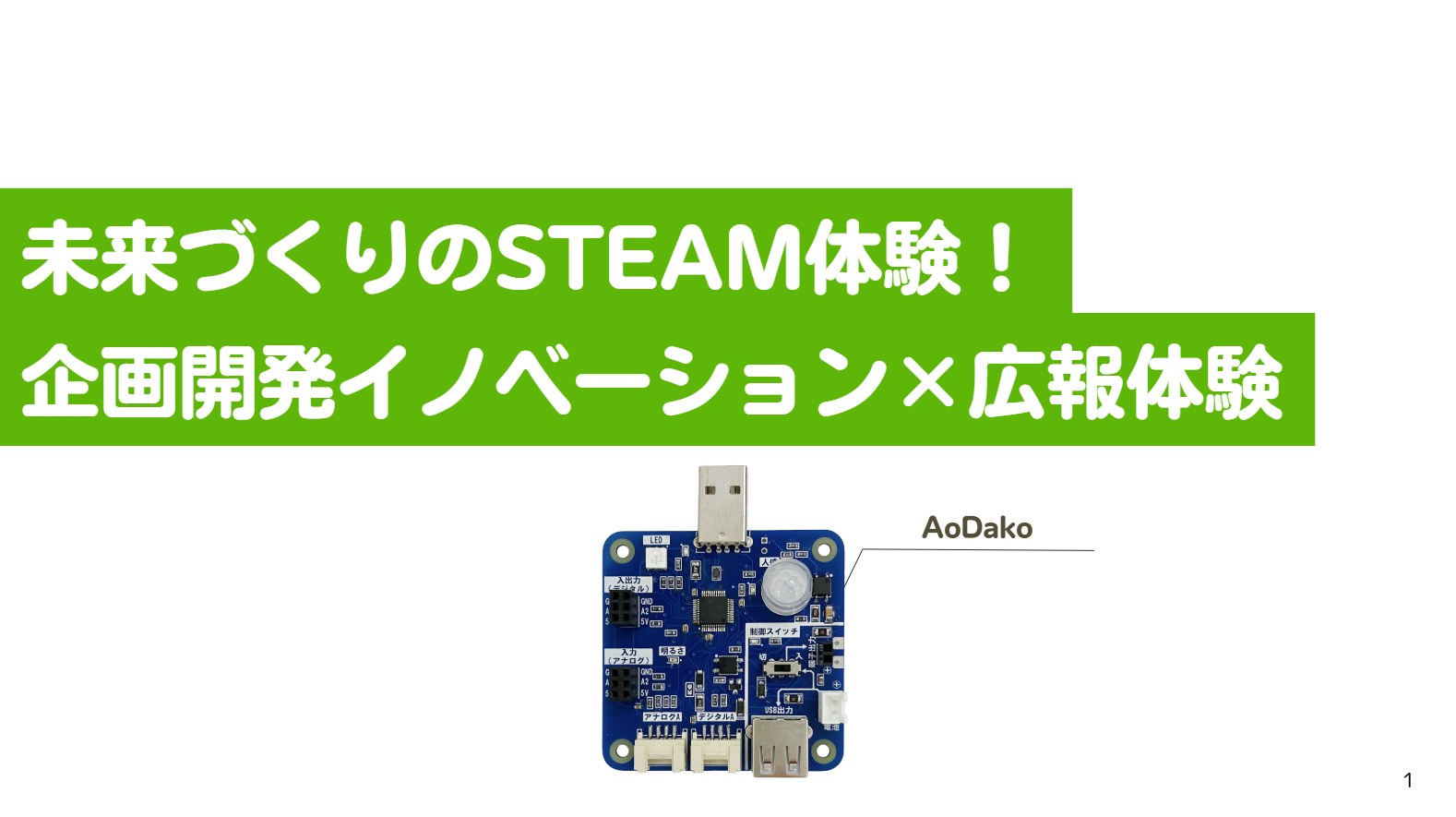 この授業スライドでは、身の回りの「困った!」や「こうだったらいいのに」と思うことに目を向け、自分たちで問題を見つけて、その解決にチャレンジします。 AoDakoを使って、プログラミングやものづくり、広報まで体験しながら、社会をよりよくするアイデア=“イノベーション”を生み出していきます。 自分の力で課題を見つけ、解決するプロセスは、将来の仕事や社会でも役に立つ大切な力です。 スライドに沿ってイノベーション体験をし、「未来を変える一歩」を踏み出してみましょう!